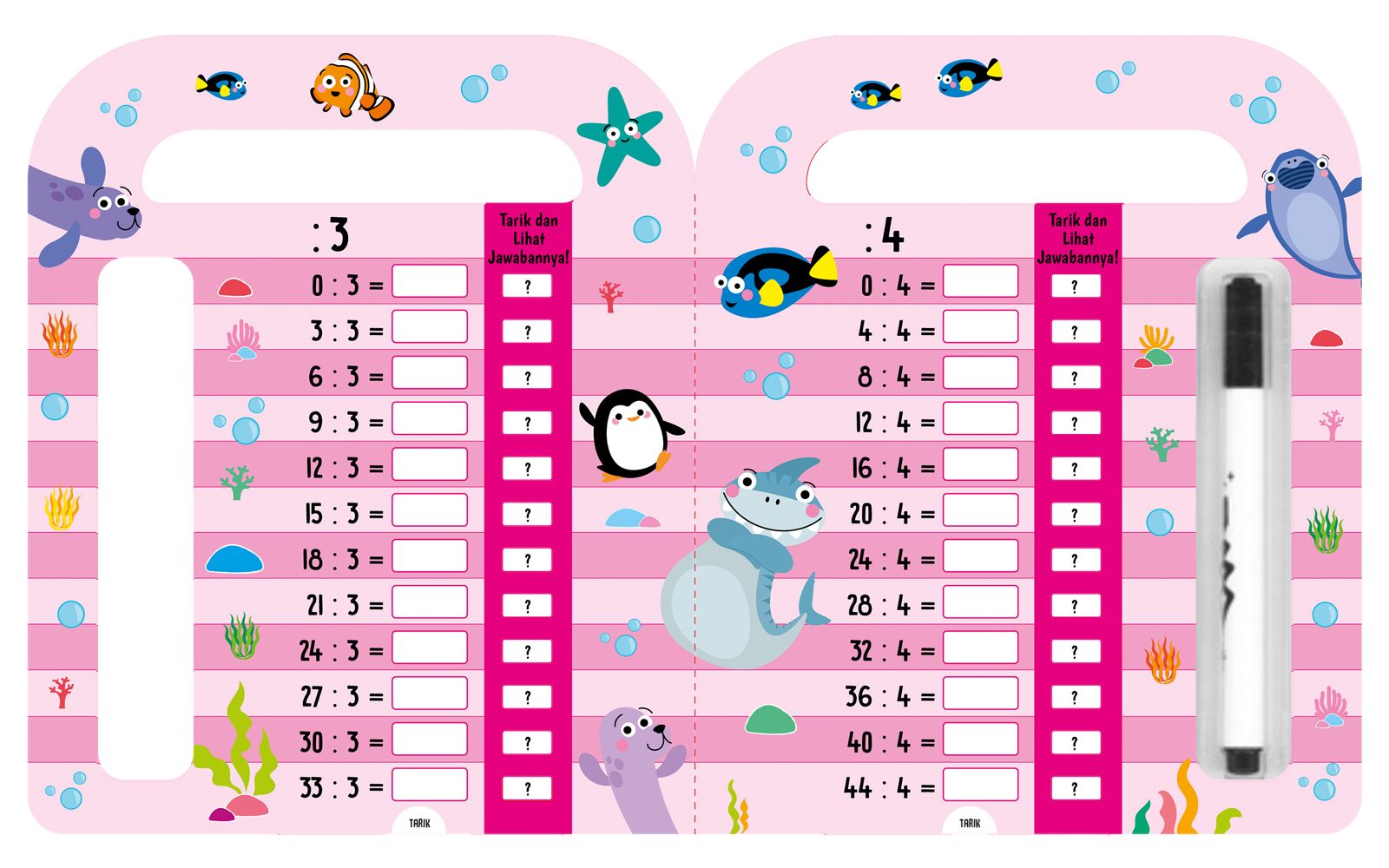Gunakan spidol dari buku ini, tulis jawabanmu, dan tarik kertas jawaban untuk mencocokkan jawabanmu. Yuk, berhitung bersama!