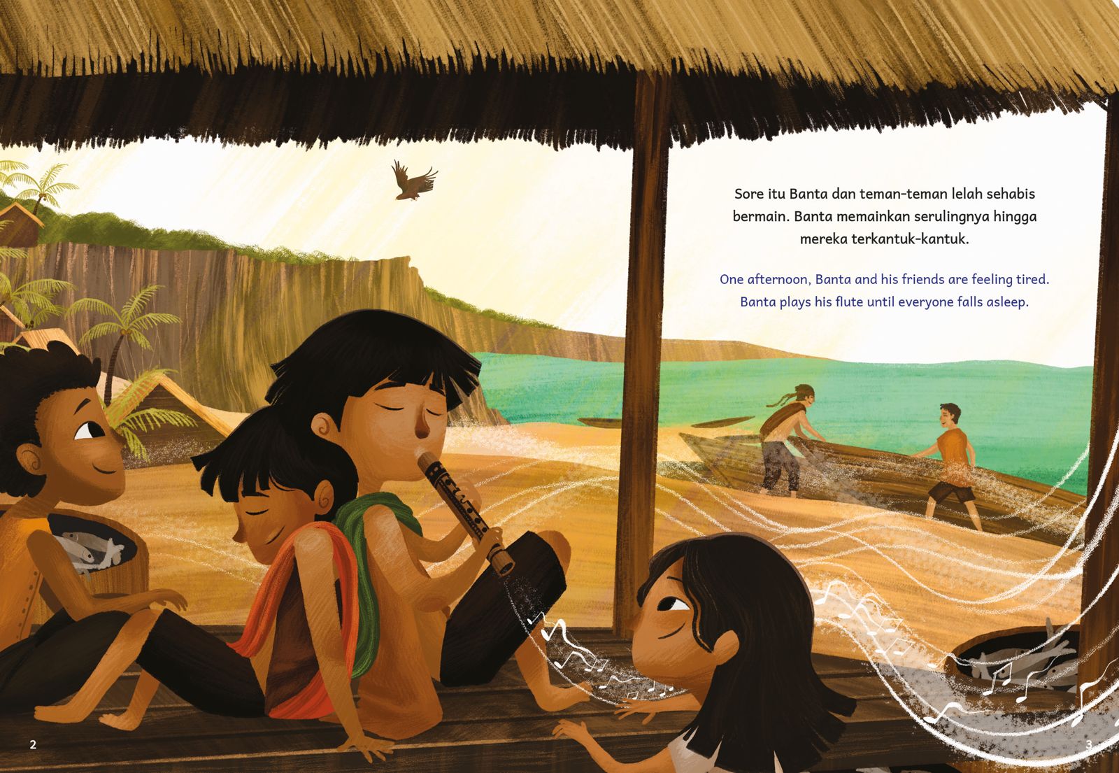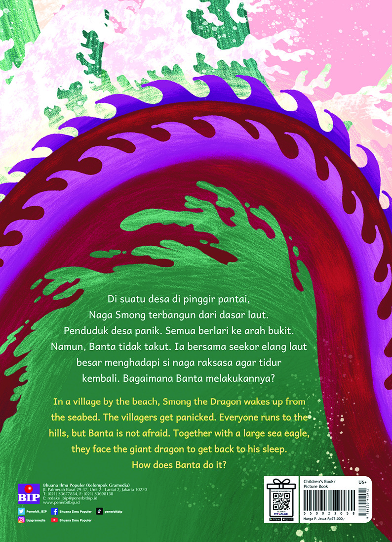 In a village by the beach, Smong the Dragon wakes up from the seabed. The villagers get panicked. Everyone runs to the hills, but Banta is not afraid. Together with a large sea eagle, they face the giant dragon to get back to his sleep. How does Banta do it?