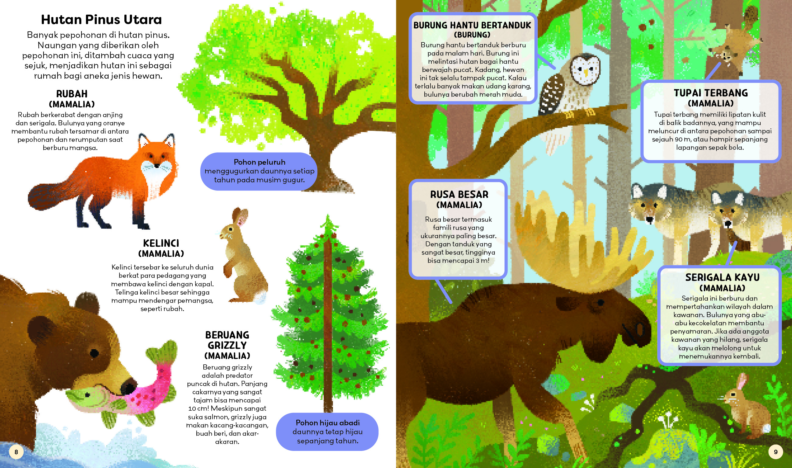 Dari penghuni hutan hujan berbulu dan predator ganas di sabana hingga makhluk laut yang aneh dan hewan gurun yang misterius, buku ini membahas semuanya dengan cara yang menyenangkan.