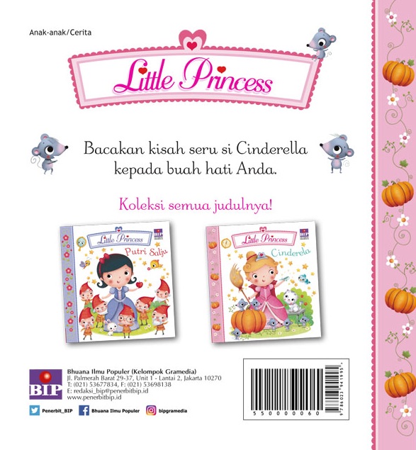 Seri Little Princess ini menceritakan kisah klasik dunia tentang Cinderella dan ibu peri yang baik hati. Dengan format boardbook dan ukuran yang kecil, buku ini cocok untuk dijadikan koleksi dan bacaan menarik bagi anak-anak.