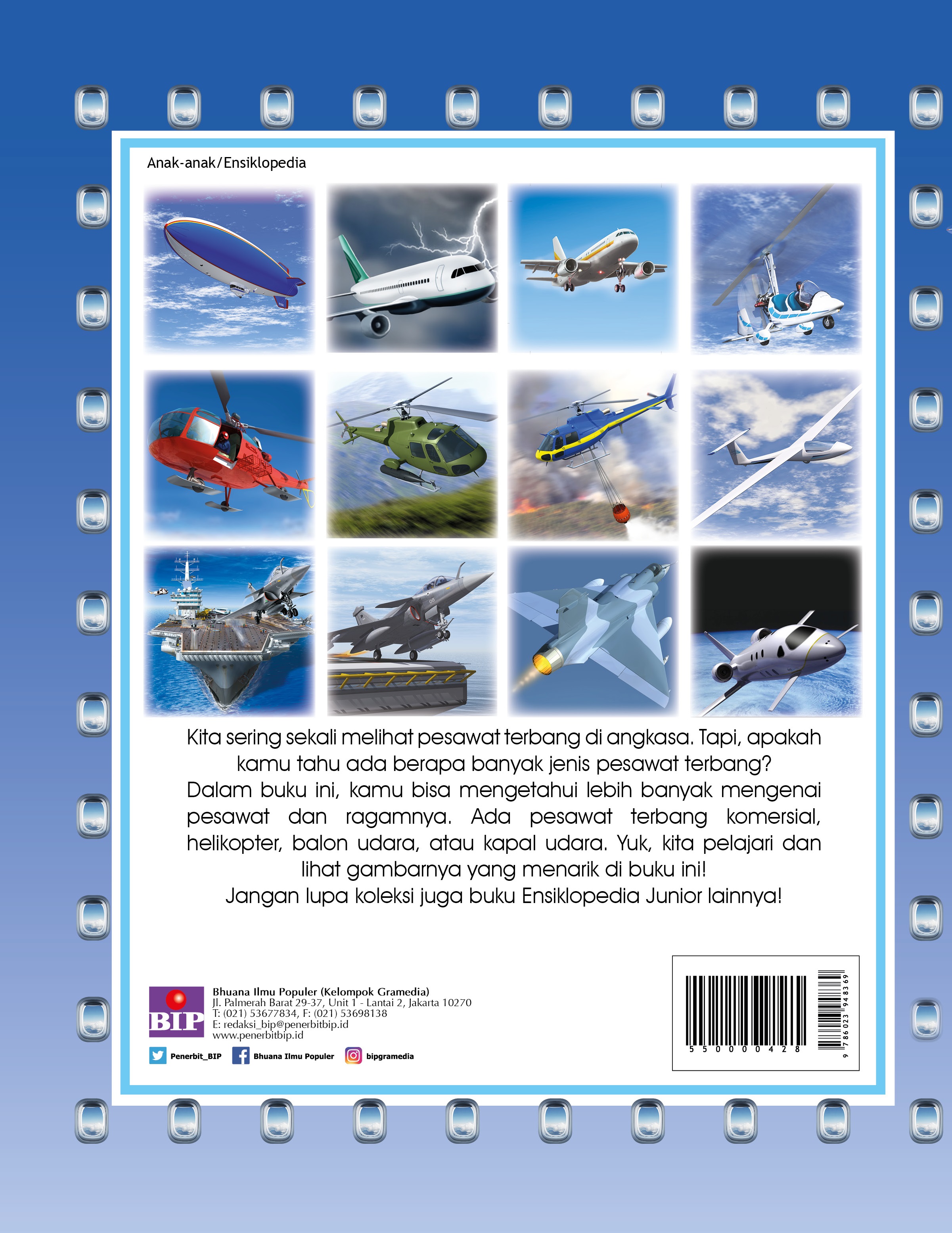 Buku ini merupakan seri Ensiklopedia Junior mengenai pesawat terbang. Dalam buku ini dijelaskan tentang sejarah pertama kali dibuatnya pesawat terbang dan berbagai jenis pesawat terbang di dunia sesuai dengan fungsinya. Penjelasan dalam buku ini singkat dan jelas dibantu dengan ilustrasi gambar dan foto mengenai berbagai jenis pesawat terbang.